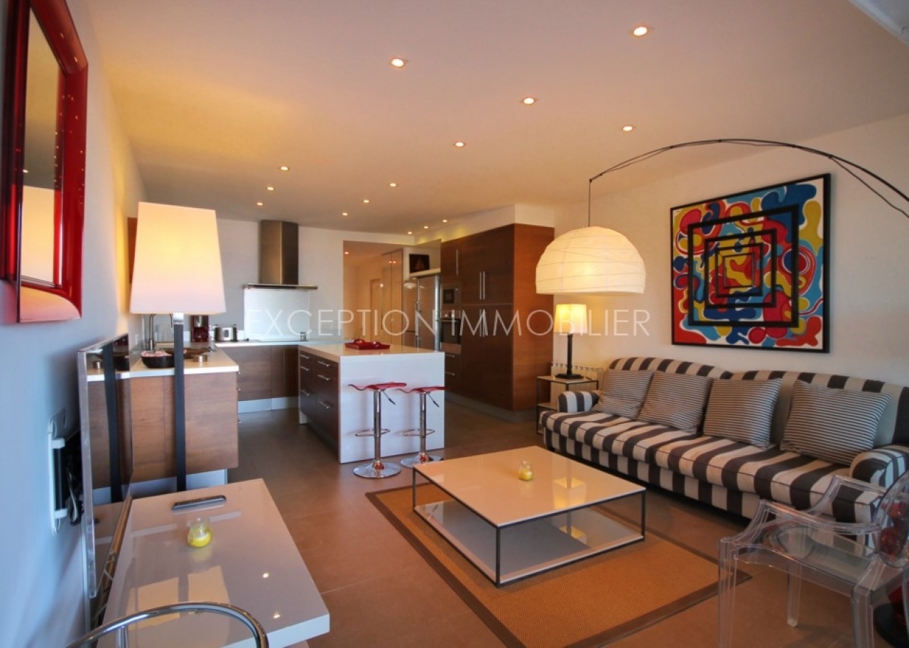 Terrace of around 70m² with a covered part facing the sea, double garage on basement. Delivered furnished.