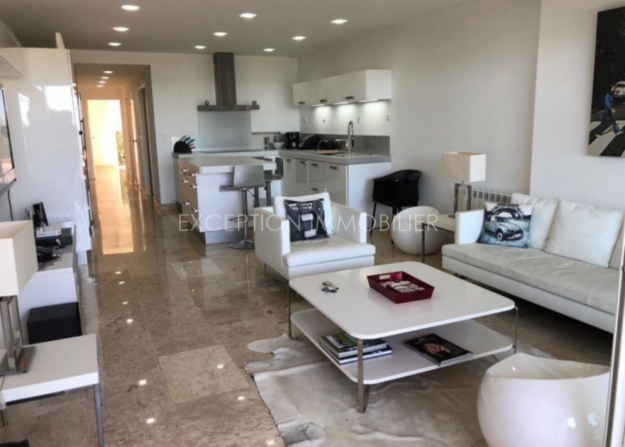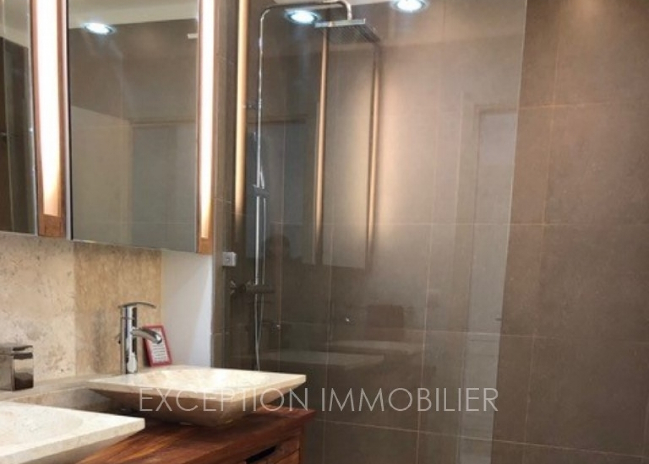 Terrace of around 70m² with a covered part facing the sea, double garage on basement. Delivered furnished.